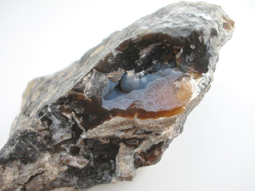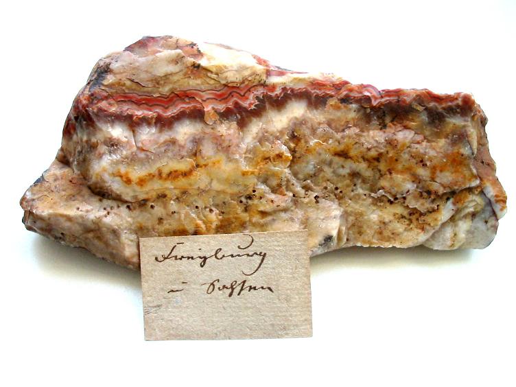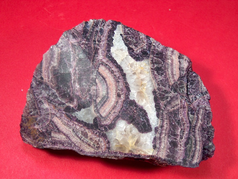 mit Fluoritlagen und kleinen Galenitfünkchen aus dem Fahr- und Treibeschacht von