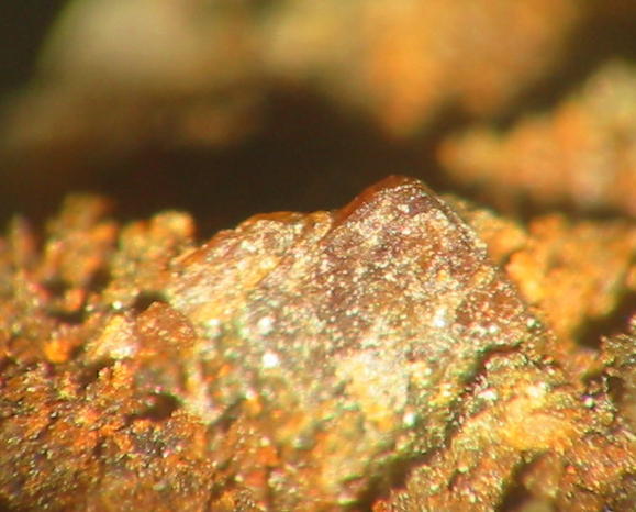 Typisches Cerussit-Drillingsaggregat (1 mm) auf verwittertem Galenit aus