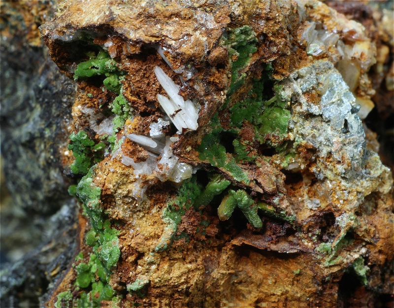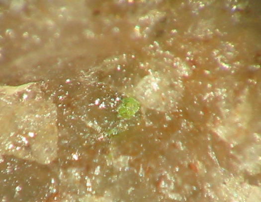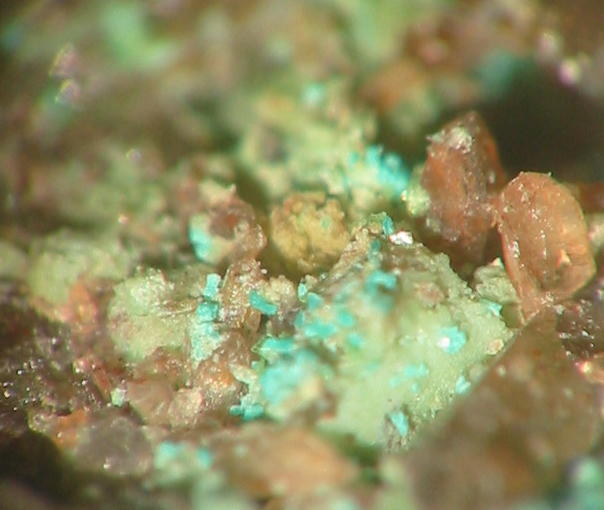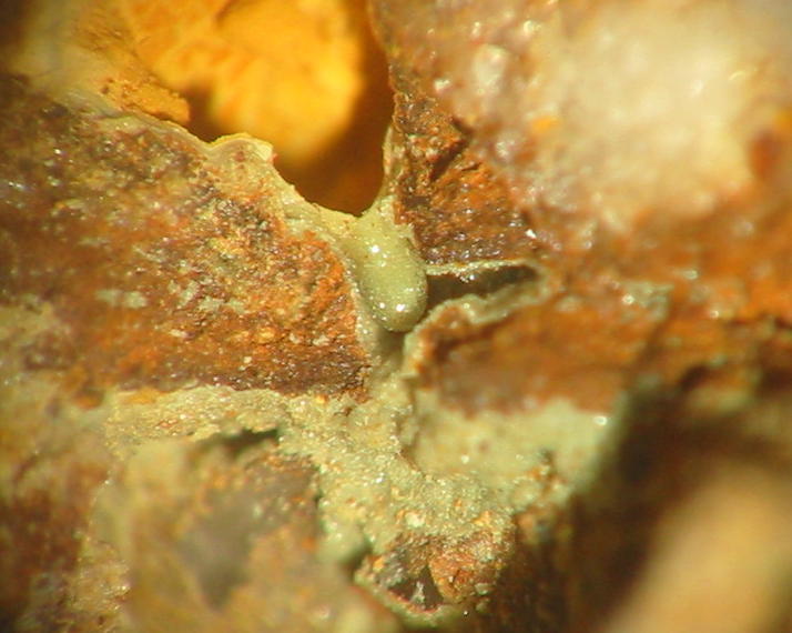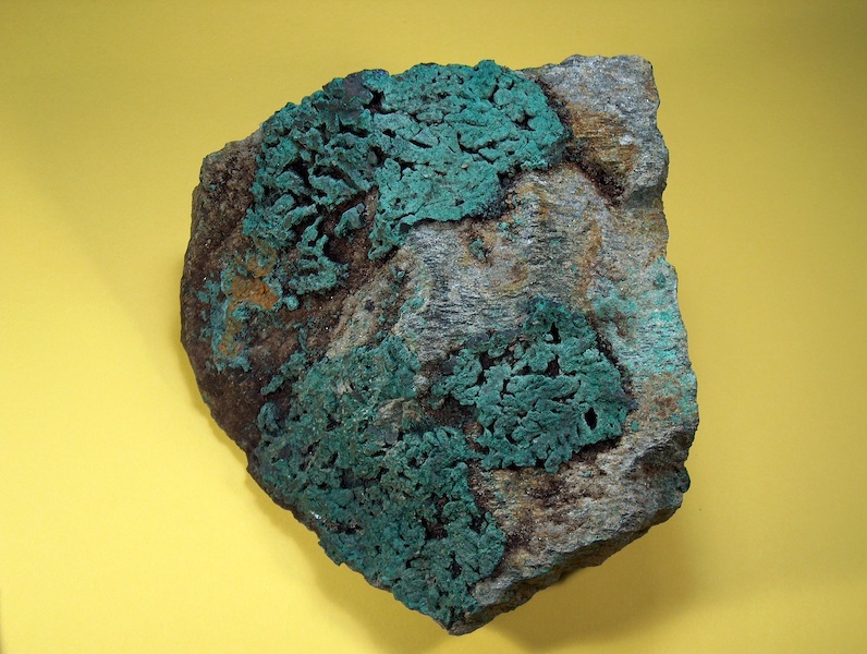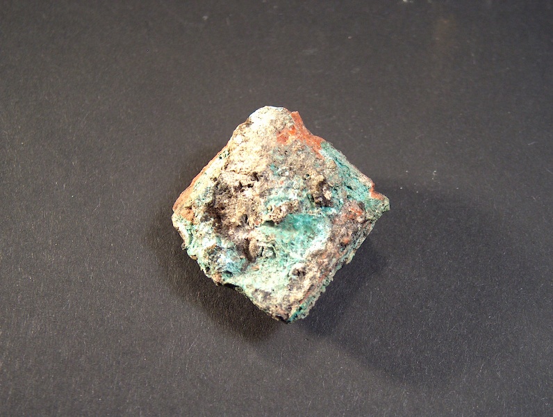 Bekzie aus Ziegelstein mit erdigem Malachit (Sekundärbildung), Grube „Alte Hoffnung Erbstolln“ (Friedrichsschacht) zu Schönborn/Dreiwerden