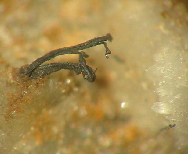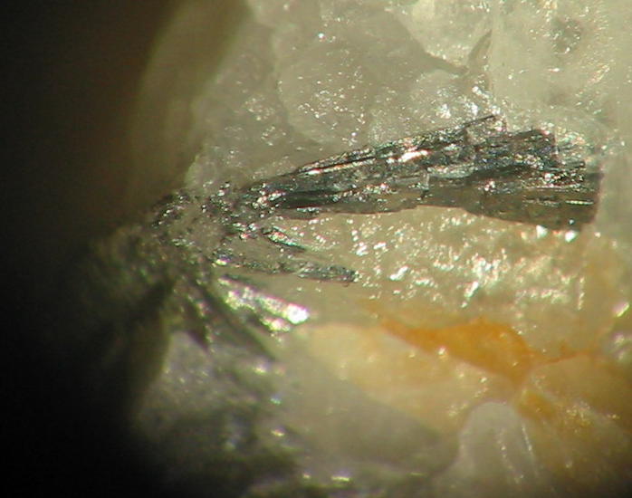 feinnadelige bis spießige Antimonitaggregate mit etwas Quarz,