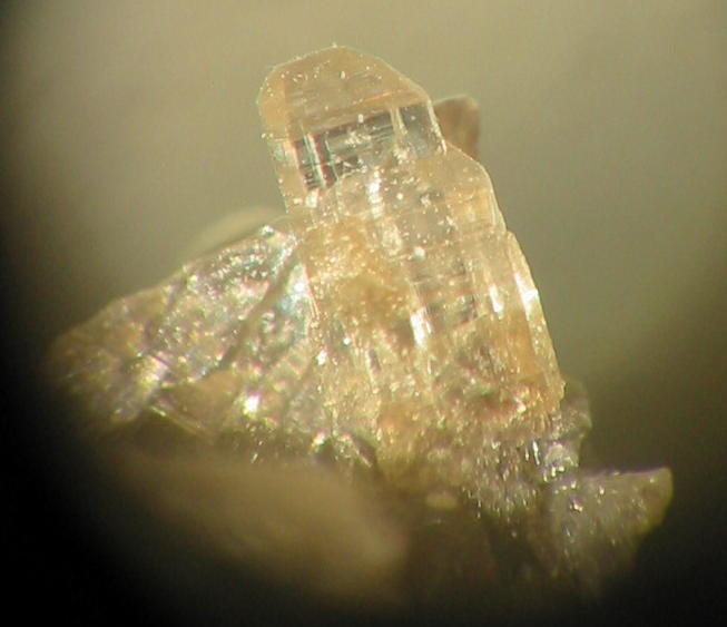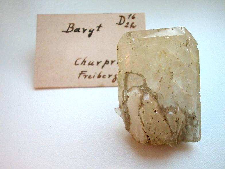 Cerussitkristall auf Baryt vom „Segen Gottes Spat“ aus der Grube „Segen Gottes