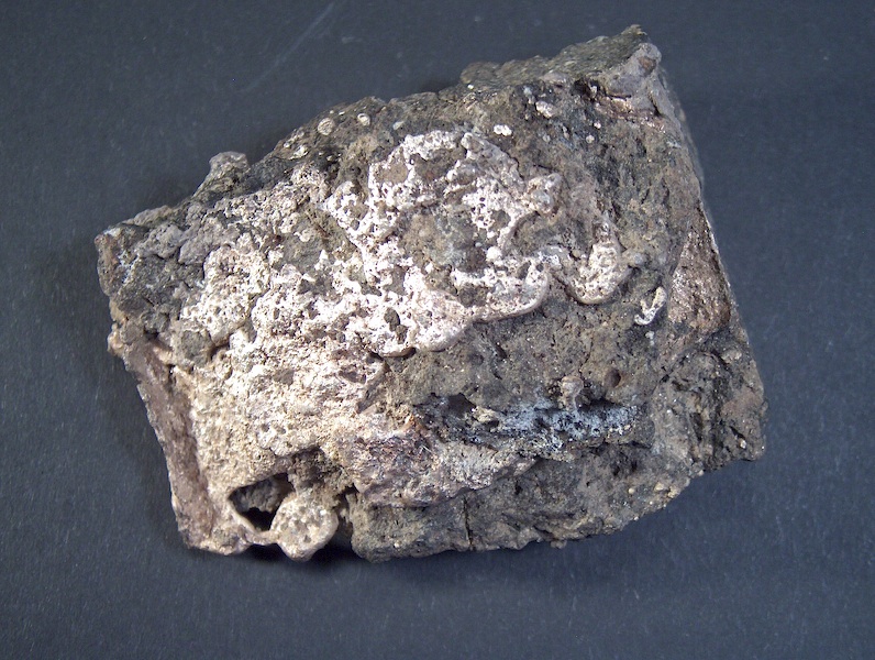 Zapfenartiger Argentit (mit Lockensilber-Pseudomorphosen besetzt) auf