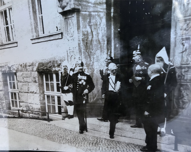 Julisonne… F e s t a k t u s . Reiche Tannengewinde verzierten die Schauseiten des Stammgebäudes, üppiges Grün das Innere der vom Feste berührten Räume. Kurz vor 11 Uhr war Se. Majestät der König*) im Sonderzug hier eingetroffen, am Bahnhof von den Herren des Kleinen Empfanges begrüßt. In Begleitung des Königs befanden sich die Herren Staatsminister Dr. von Seydewitz, General der Kav. Generaladjutant Freiherr von Müller, Kämmerer Generalleutnant z. D. von Criegern, Ministerialdirektor Geheimer Rat Dr. Wähle, Vizeoberstallmeister von Römer, Flügeladjutant Major Freiherr von Fritzsch. In Hofwagen wurde die Fahrt nach der Stadt angetreten, durch die im reichen Flaggenschmuck prangenden Straßen. Am Haupteingange des Akademiegebäudes empfingen die Herren Rektor Oberbergrat Prof. Galli und Prorektor Oberbergrat Prof. Dr. Kolbeck den König und geleiteten Se. Majestät nach der Aula, aus der Klänge eines vom städtischen Orchester gespielten Chorais entgegenschallten. Als dieser verklungen, nahm Se. Exzellenz der Herr Staats- und Finanzminister Dr. von Seydewitz das Wort: „… Nur ganz wenige aus der glänzenden Fülle von Persönlichkeiten, deren Namen noch heute die Wissenschaft mit hoher Achtung nennt, will ich in dieser der dankbaren Erinnerung gewidmeten Weihestunde herausgreifen: Altmeister Abraham Gottlob Werner begründete hier die Wissenschaft der heutigen Geologie, hier wirkte Lampadius, der Urheber der ersten Gasanstalt des Kontinents, hier lehrten Leuchten der Wissenschaft, wie Geliert, der Bruder des Dichters, von Charpentier, Breithaupt und aus neuerer Zeit Weisbach, Zeuner, Ledebur, Clemens Winkler und neben und mit ihnen viele andere, deren ehrendes Gedächtnis für immer mit der altehrwürdigen Bergakademie verknüpft ist. Andererseits darf die Hochschule auf eine lange Reihe von Männern zurückblicken, die hier ihre Ausbildung gefunden und den Ruhm ihrer ausgezeichneten Bildungsstätte durch ihre ganze Lebensarbeit in alle Lande hinausgetragen haben…“ Im Anschluß hieran hielt Se. Magnifizenz Herr Rektor Geheimer Bergrat Professor Galli die Festrede, in der er folgendes ausführte: „… Hinter uns liegen 150 Jahre Geistesarbeit und von dem Tage der Gründung durch Se. Königliche Hoheit Prinz Xaver, den Administrator des Kurfürstentums Sachsen, bis zum heutigen Tage konnte sich die Bergakademie Freiberg unter dem Schütze des Herrscherhauses Wettin zu segensreicher Tätigkeit entwickeln. Manche Umgestaltung hat die Bergakademie im Laufe der Zeiten, Dank der Fürsorge einer Hohen Staatsregierung, nach innen und außen erfahren, aber sie ist treu geblieben dem Platze, auf welchem sie einst Allerhöchste Einsicht und Entscheidung als erste technische Hochschule der Welt ins Leben gerufen hat. Unweit jener Stelle, an welche die Sage den ersten Silberfund zur Zeit Otto des Reichen verlegt, steht sie heute noch, und wird, wie wir freudig hoffen, auch fernerhin der alten Bergstadt Freiberg treu und erhalten bleiben. Ist auch der Silberreichtum unserer Berge zur Neige gegangen, so sind durch die weitausschauende Wirtschaftspolitik einer Hohen Staatsregierung dem Lande neue Hilfsquellen erschlossen und ein neuer Impuls ist dem Lehrbetrieb der Bergakademie gegeben worden. Mehr als bisher werden in Zukunft der Braunkohlen- und Kalibergbau, und damit im Zusammenhang stehend die maschinen- und elektrotechnische Ausbildung unserer Ingenieure Berücksichtigung finden und so sind es heute höhere Werte, welche die Jünger montanistischer Wissenschaften hier erschürfen…“ Die Feier schloß mit einem Dank des Rektors der Jubiläumsakademie und Musikvortrag des Stadtorchesters. Se. Majestät war sowohl zu Beginn wie am Ende der Feier durch stürmische Hochrufe begrüßt worden. Anschließend erfolgte sodann nach Rundgang Sr. Majestät durch die Nonnengasse, Promenade, Am Gymnasium nach der Brennhausgasse. Die Besichtigung des neuerbauten Instituts für Mineralogie und Geologie an dessen meisterhaft mit Steinhauerarbeiten geschmücktem Portal Se. Majestät durch den Referenten für Bausachen im Finanzministerium, Herrn Geh. Baurat Canzler, den Herren der Bauführung und den Leitern der Institute, den Herren Geheimen Bergräten Prof. Dr. Beck und Prof. Dr. Kolbeck empfangen und nach dem Hörsaal für Geologie geführt wurden…“ *) Se. Majestät der König war zugleich der letzte auf dem Thron des Königreichs Sachsen. Als solcher amtierte dazumal Friedrich August, III. und dankte 1919 ab.