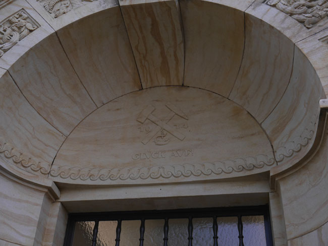 Tatsächlich aber weist das Gebäude in seinem Inneren einige architektonische Besonderheiten auf. Obwohl es von außen aufgrund der Natursteinverblendung des Untergeschosses, der mit kleinen Applikationen geschmückten Fensterstürze im Erdgeschoß und dem schmuckvollen Portal aus Sandstein eher den Anschein des Jugendstils erweckt, gilt es als der erste Eisenbetonbau in Sachsen. Diese Bauweise ist heute allgemein verbreitet. Mittels Spannbeton werden gewaltige Brücken und Hochhäuser errichtet. Tatsächlich war es aber ausgerechnet ein Gärtner, Joseph Monier aus Saint Quentin bei Nimes, der 1867 ein Patent auf mit Drahtgewebe verstärkte Pflanzkübel aus Zementmörtel erhielt. Der Begriff „Monier-Eisen“ für den Bewehrungsstahl im Beton geht auf diesen findigen Mann zurück. In Deutschland erwarb 1884 zunächst Conrad Freytag die Monier´schen Patente für den süddeutschen Raum. Er hatte 1875 die Baustoffhandlung Freytag & Heidschuch oHG in Neustadt gegründet und wandte sich nun der Herstellung von Betonfertigteilen, insbesondere Betonrohren, zu. 1885 trat er die Vorkaufsrechte an den Patenten für den norddeutschen Raum an Gustav Adolf Wayss ab, der nun seinerseits in Berlin die G. A. Wayss & Cie. gründete, die spätere Beton- und Monierbau AG. Bei dem damals gerade in Bau befindlichen Reichstagsgebäude wurde die Stahlbetonbauweise vom preußischen Regierungsbaumeister Matthias Koenen erstmals für Decken und Gewölbe angewendet (wikipedia). Die Entscheidung für die dazumal noch hochmoderne Stahlbetonbauweise hatte man sich in Freiberg wohl auch genau überlegt, denn jeder, der schon mal ein paar Steine in der Hand hatte, weiß aus eigener Erfahrung, daß eine mineralogische Sammlung ein gewisses Gewicht besitzt. Hinzu kommt, daß man sich – der schlechten Lichtverhältnisse in den Gassen der Altstadt geschuldet – dafür entschieden hatte, die Sammlungsräume in das Obergeschoß zu verlegen. Deren gesamte Last liegt also unter dem Dachgeschoß! Schaut man dann sich die Sammlungsräume von innen an, sieht man außerdem, daß die Decke des Obergeschosses auf ihrer gesamten Breite – nur von wenigen Trägern überspannt, die auf je vier schlanken, quadratischen Pfeilern ruhen – freitragend ausgeführt wurde, um nämlich Platz zu schaffen und um das Licht der Fenster möglichst ungebrochen in den gesamten Raum hineinzulassen. Dies war der Nutzung der Sammlungen im Rahmen der studentischen Ausbildung sicher förderlich; es hat für uns Gäste in heutiger Zeit allerdings leider den Nachteil, daß die Lichtverhältnisse dem Fotografieren – ganz im Gegensatz zur „terra“ – äußerst unzuträglich sind.