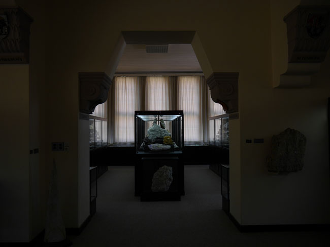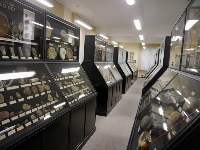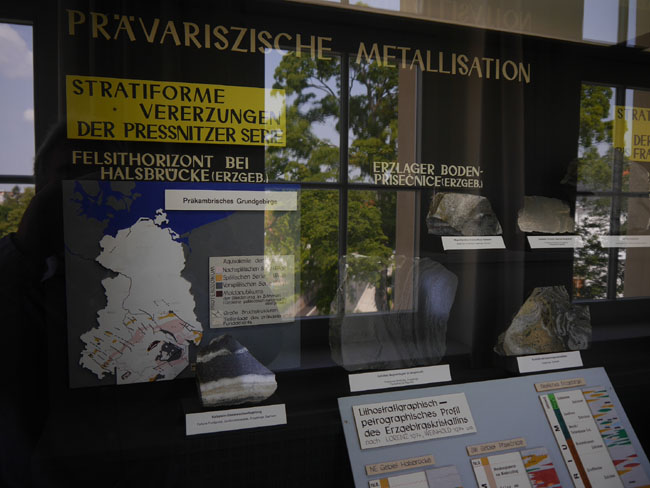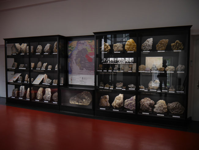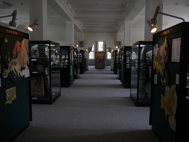 Nun fehlt uns nur noch der Saal am Westgiebel. Hier findet sich ein weiterer Teil der regionalgeologisch- lagerstättenkundlichen Sammlungen.