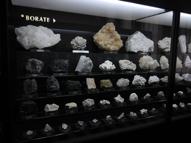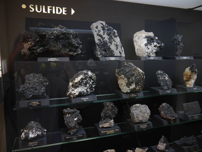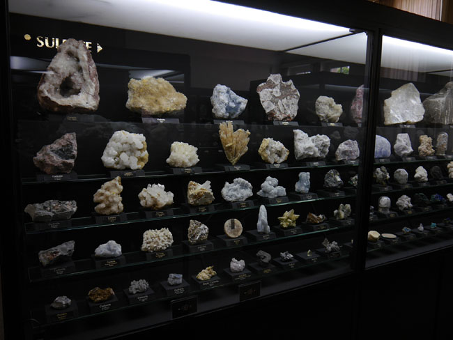 Auf meinem Foto etwas schwer zu lesen: Die nächsten Vitrinen enthalten Sulfate.