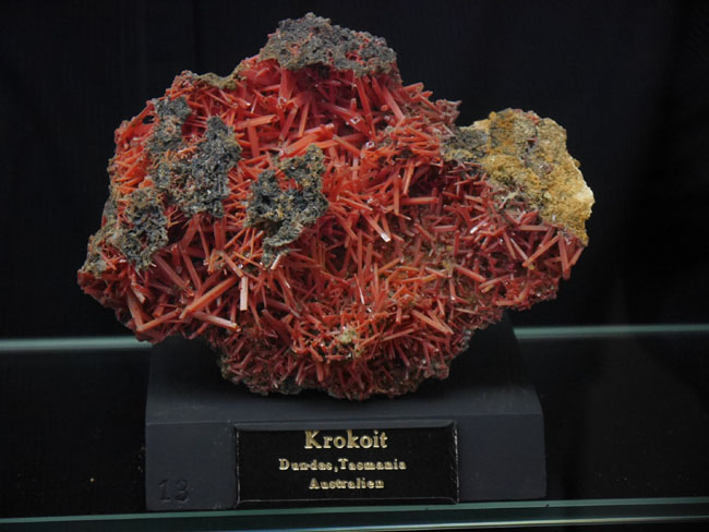 In diese Klasse gehören auch die Chromate. Weltbekannt sind Stufen vergleichbarer Qualität, die man Ende der 1970er Jahre in der Nickellagerstätte Callenberg in Sachsen gefunden hat: Das Blei-Chromat Krokoit PbCrO4.