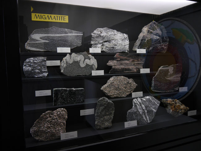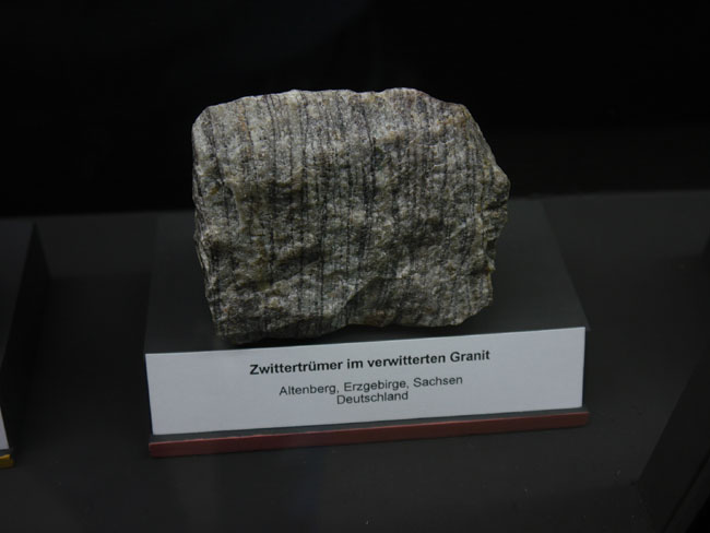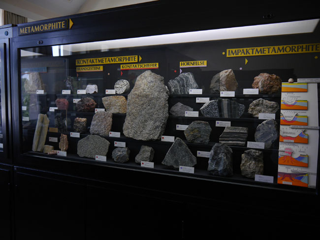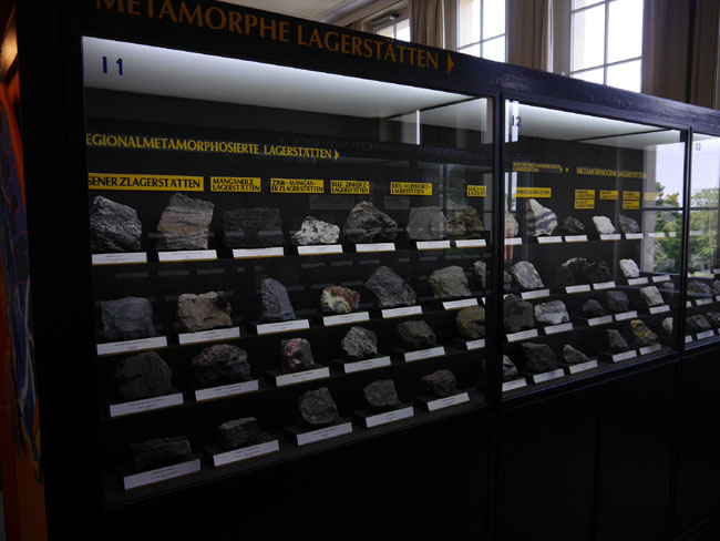 Auch durch Metamorphose können sich neue Lagerstätten bilden, wie uns jetzt wieder die gelbe Beschriftung der Vitrinen verrät.