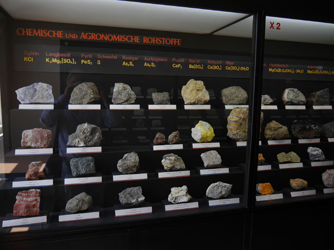 Eine haben wir noch: Eine Spezialvitrine zu den Salzen aus den thüringischen und anhaltinischen Lagerstätten.