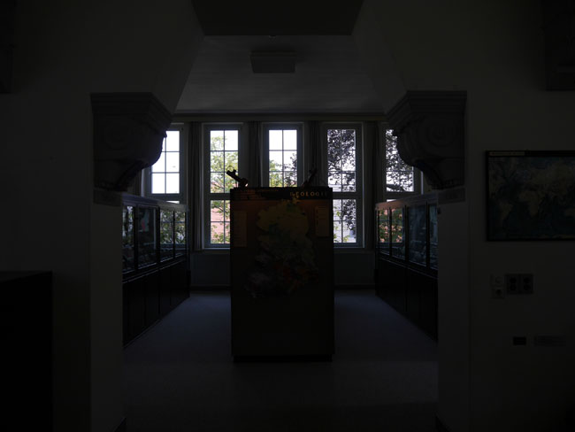 Die Architektur des Saales ist vollkommen symmetrisch zu dem mit der mineralogischen Sammlung gegenüber.