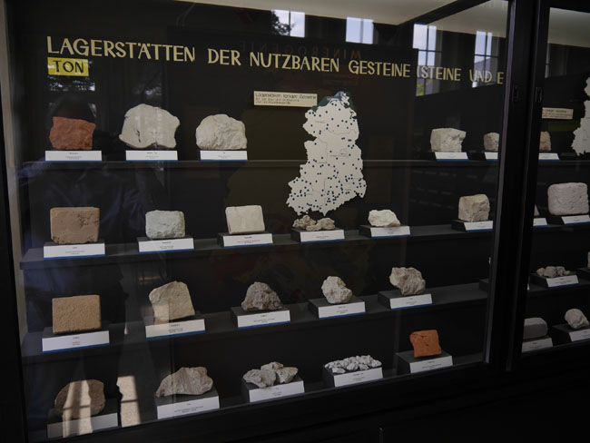 Leider stört uns auch hier wieder das Licht der Fenster beim Fotografieren, aber uns alten „Ossis“ fällt eines trotzdem sofort ins Auge: In dieser Lagerstättensammlung hängt noch die geologische Karte der DDR, heute also der „neuen“ Bundesländer…