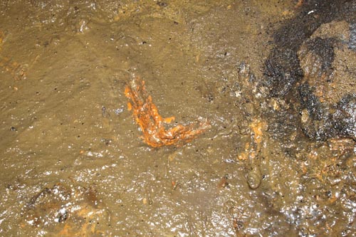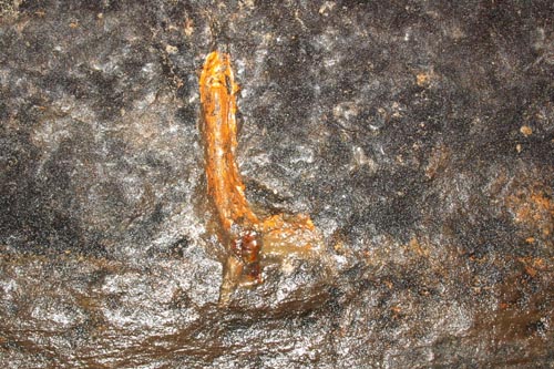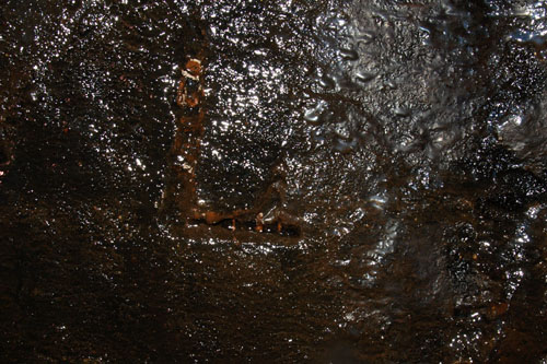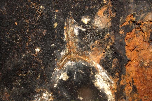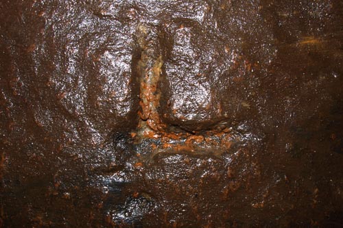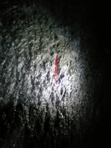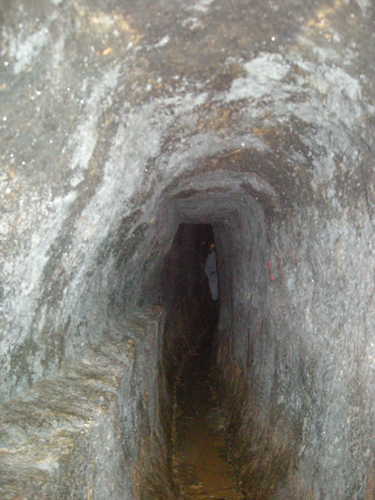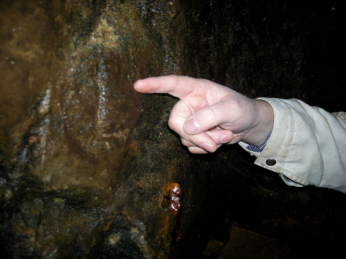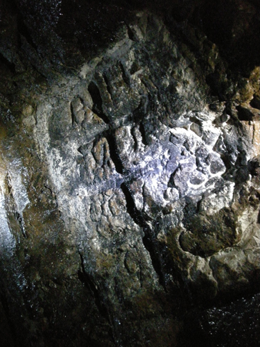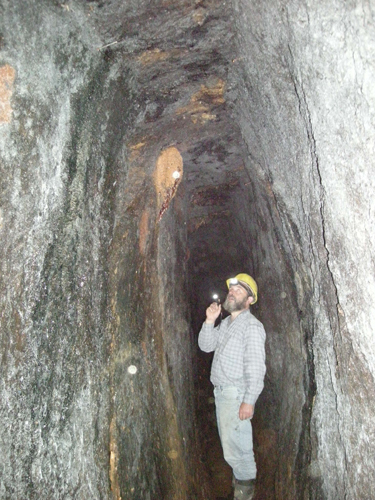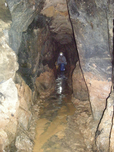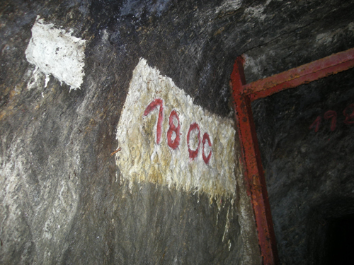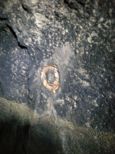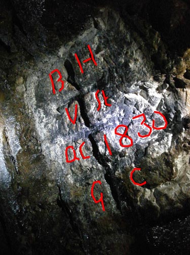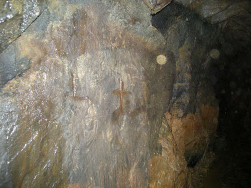 ![]() Und hier die Gangtafel auf dem Viktor Stehenden. Im Bild rechts unten sieht man das Blindort des Stollns in südöstlicher Richtung. Genau an der Ecke links darüber wurde die Gangtafel eingeschlagen. |