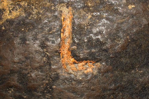 eingeschlagen und schlussendlich ganz unten die Initialen