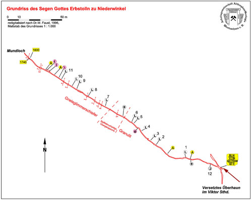 Die Lage der genannten Gedinge verdeutlichen wir wohl am besten mit nachstehender Zeichnung, welche von Herrn Dr. Faust anno 1996 angefertigt und von uns für diesen Zweck abgezogen und ergänzt worden ist.