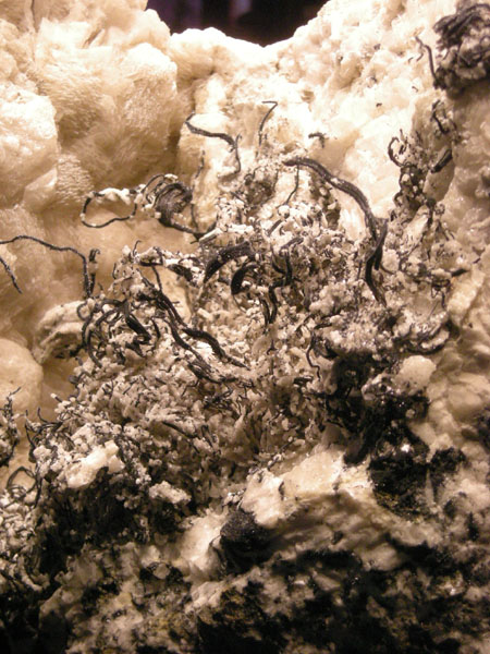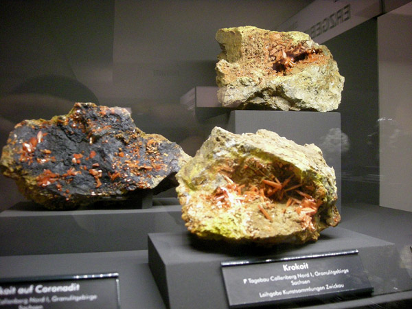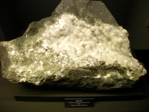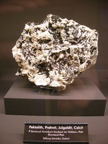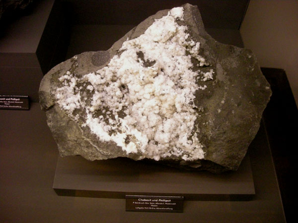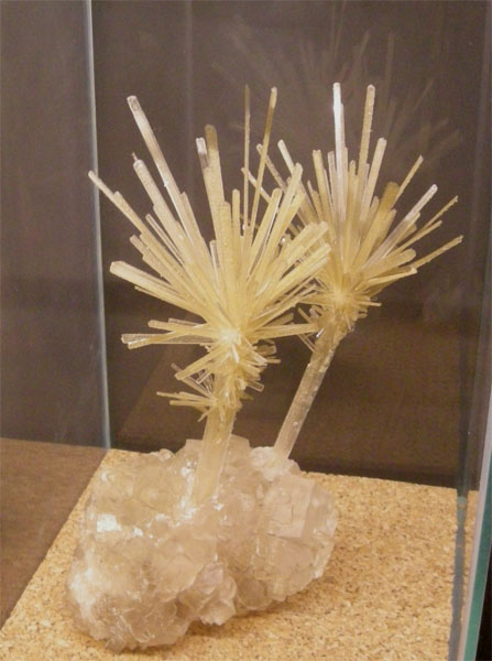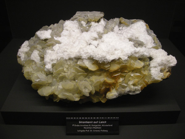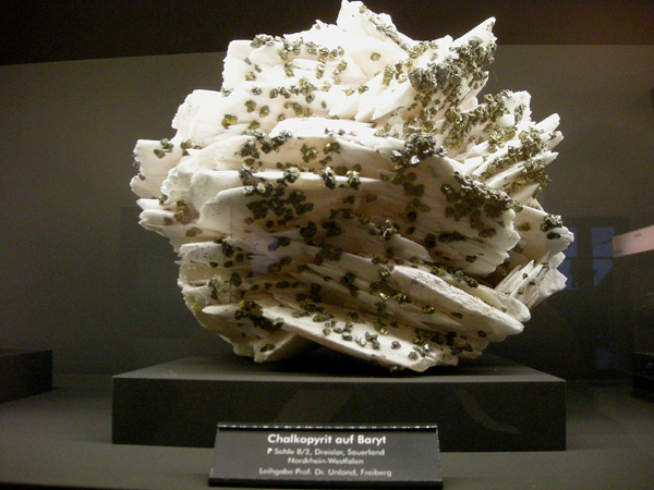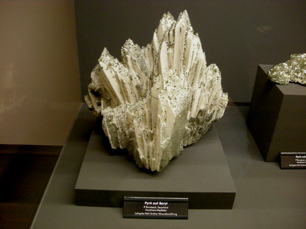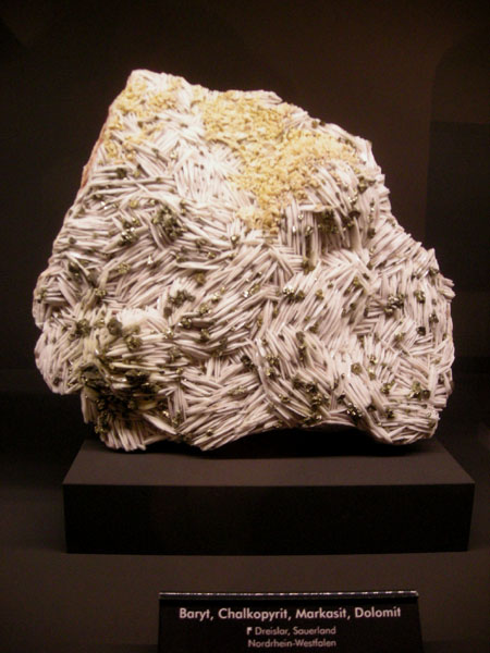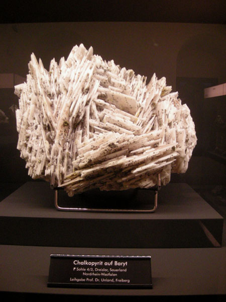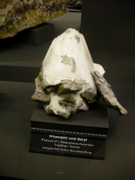 Ausstellungsvitrinen zieren. Dieses hier ist Whewellit, ein organisches Mineral