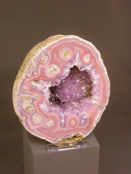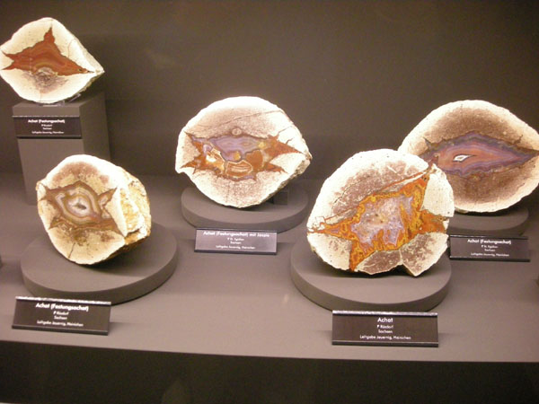Stufen begrüßt: Hier drehen sich St.Egidien'er Achatmandeln in der Vitrine.
