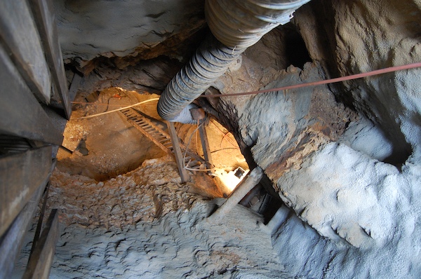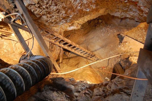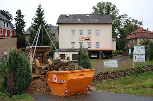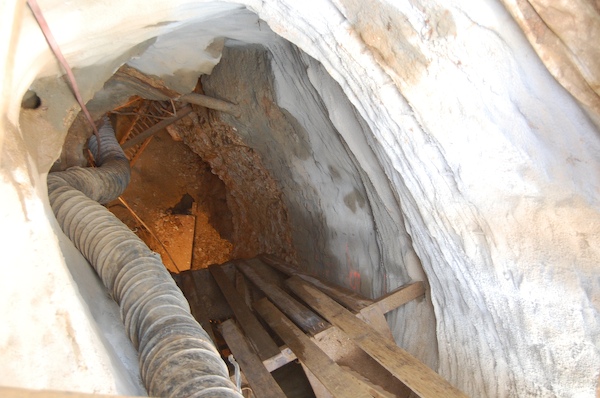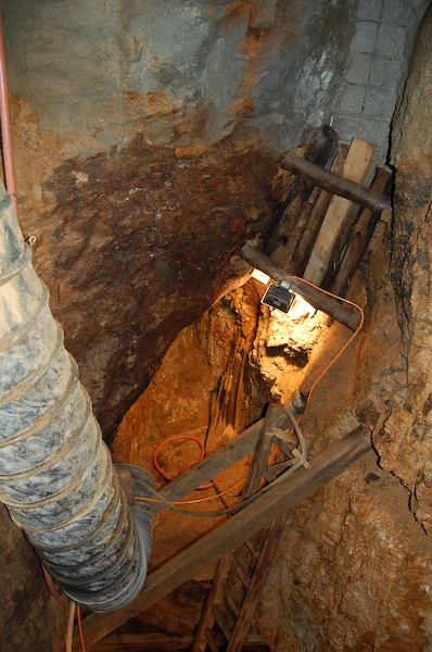 ![]() Und noch ein Raumbild vom Baustellenschacht. Aus dieser Perspektive sind es etwa 15 m bis zum Tageslicht. |