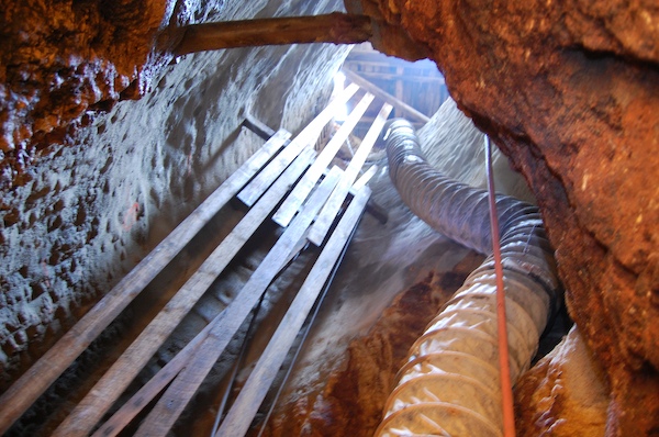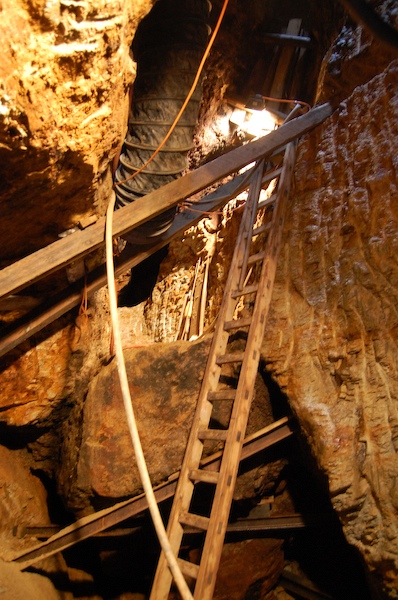 ![]() Kurz vor Ende der wirklich hochinteressanten Tour noch ein Blick von der Grundstrecke hinauf in den Baustellenschacht. |