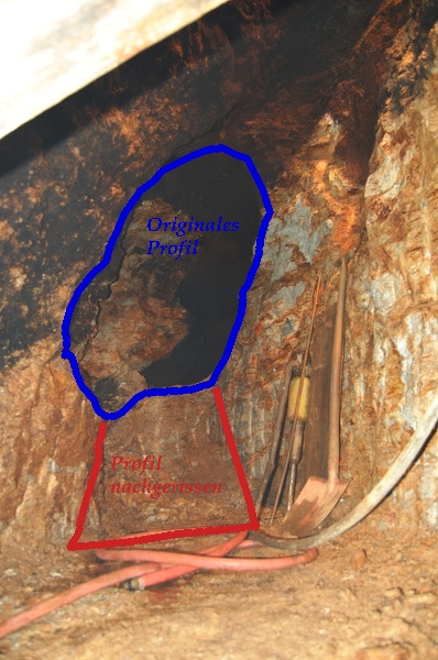 ![]() In der Sohle gerade 30 cm weit, nicht sehr viel für einen Befahrer! Aber wie hat man bei diesem Profil überhaupt die Auffahrung bewerkstelligt? |