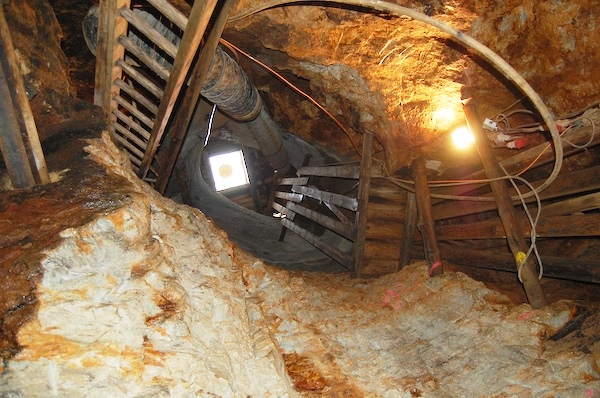 ![]() Vom Füllort des Schachtes geht eine weitere Strecke als Querschlag durch das feste Gestein zur benachbarten Grube... |