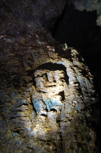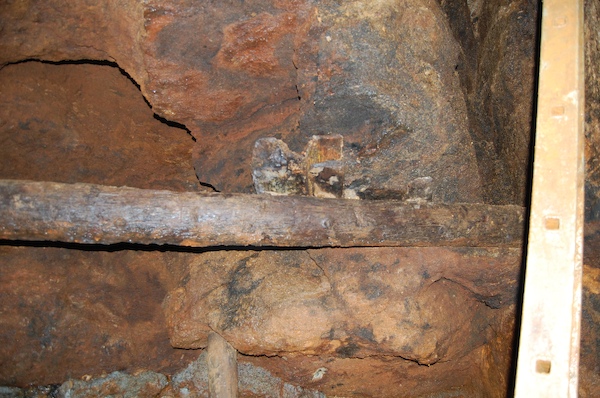 ![]() Das wohl interessanteste Artefakt gab es in einem größeren Hohlraum zwischen zwei Schachtbereichen, wohl das gemeinsame Füllort, zu sehen. |