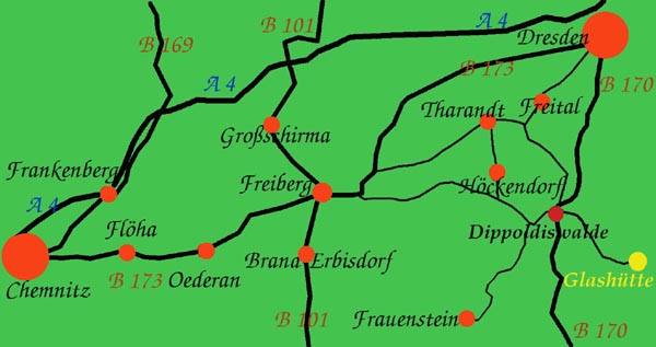 Glashütte ist verkehrstechnisch relativ gut erreichbar, sowohl von Dresden wie auch von Chemnitz.