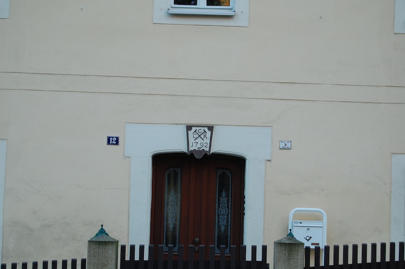 Die oberste Zeile „F M“ steht hier wahrscheinlich für die „Fundgruben- Mitte“ – der senkrechte Strich in der Tafel markiert die genaue Örtlichkeit. Tafeln mit einer solchen vierten Zeile („F M“) habe ich ansonsten noch in Berggießhübel gesehen.