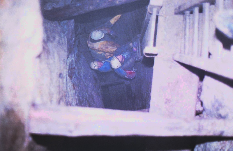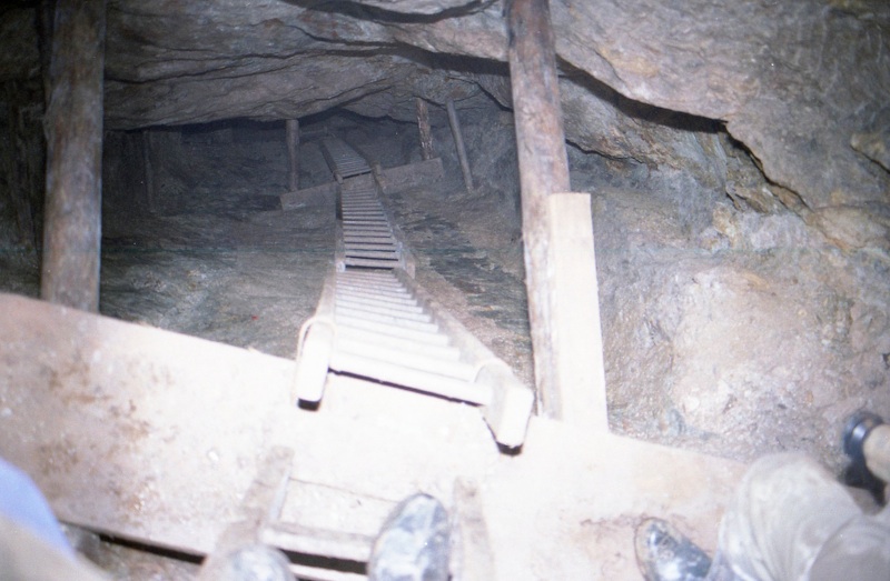 Der Schacht wurde über eine Art „Himmelsleiter“ befahren, es fehlten eben die sonst üblichen Umsteigebühnen zwischen den einzelnen Fahrten.