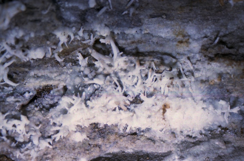 Typisch für dieses Revier waren die unzähligen Sekundärmineralbildungen wie hier in Form von Aragonit.