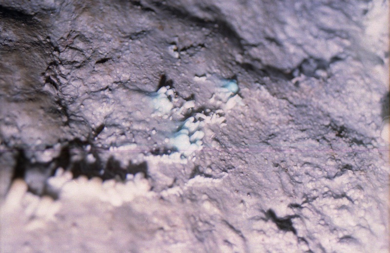 Blaue Einfärbungen des Aragonit könnten von der Kupfermineralisation stammen.