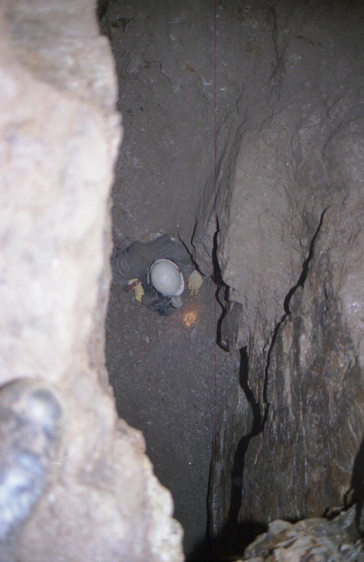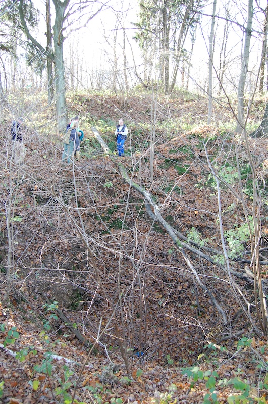 Fast aus dem „Nichts“ tauchen manche Befahrer auf! Diese Stelle wurde übrigens auch von Glashütter Bergbaufreunden „verfüllt“. Dieser Kleinkrieg mit Befahrern und Bergsicherungsbetrieb endete mit einem schicken Dankeschön, einer  Betonplombe auf dem „Apostelstolln“ (siehe aktuelle Befahrung oben )!