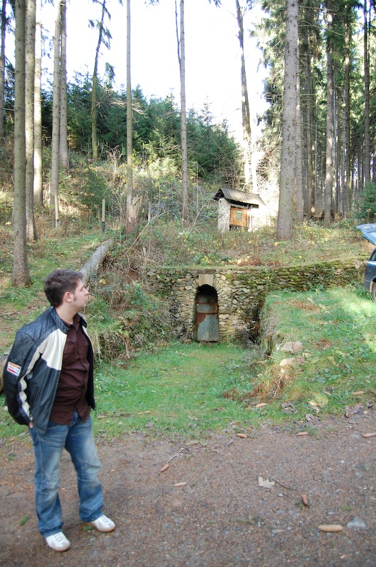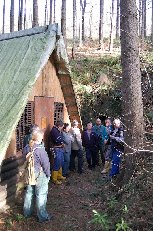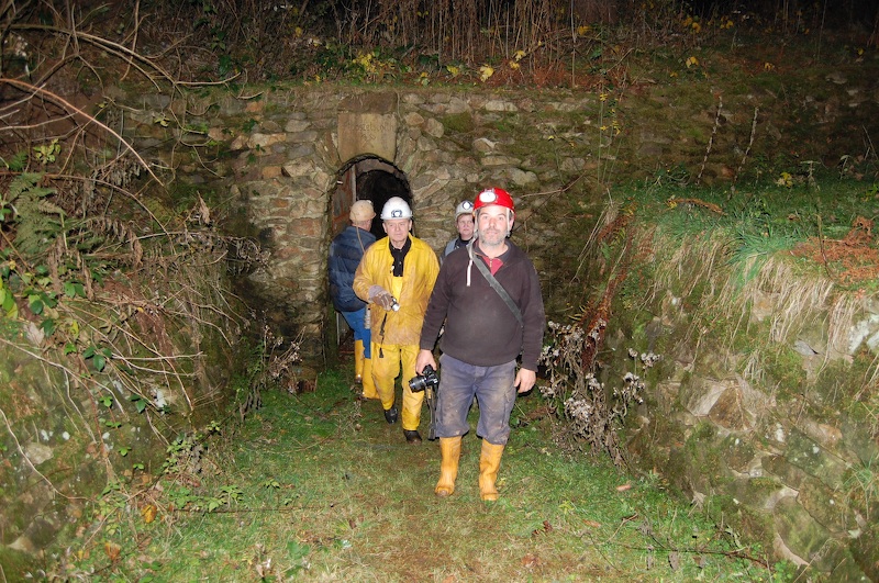 Unsere Exkursionsgruppe an einem geschichtsträchtigen Punkt der Neuzeit! Hier war bis vor einigen Jahren noch ein fahrbarer Schacht und der Zugang zum Glashütter Revier für Schwarzbefahrer, 1. untere Maß auf Heilig Geist.