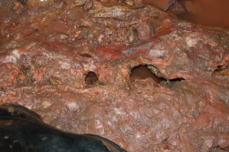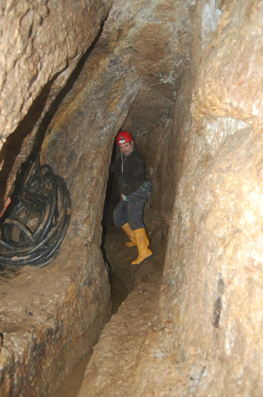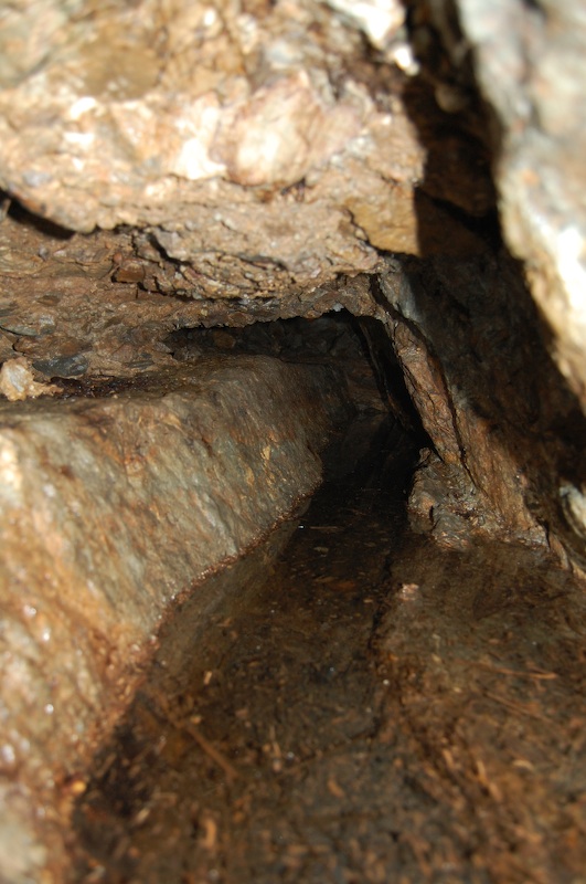 Der geschlägelte Stollnflügel mit dem Gang im rechten Stoß. Dieser Grubenteil ist mittels Wasser durch die Glashütter Bergbaufreunde regelrecht „gewaschen“ worden. Einigen Bergbaufreunden wird diese Initiative wohl missfallen, doch ist damit die Möglichkeit gegeben, Gebirge und Mineralisation bergfrisch wie die „Alten“ beim Vortrieb in Augenschein zunehmen.