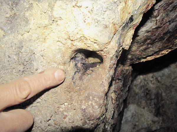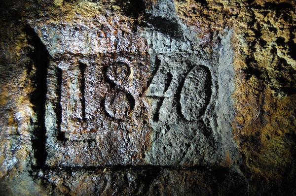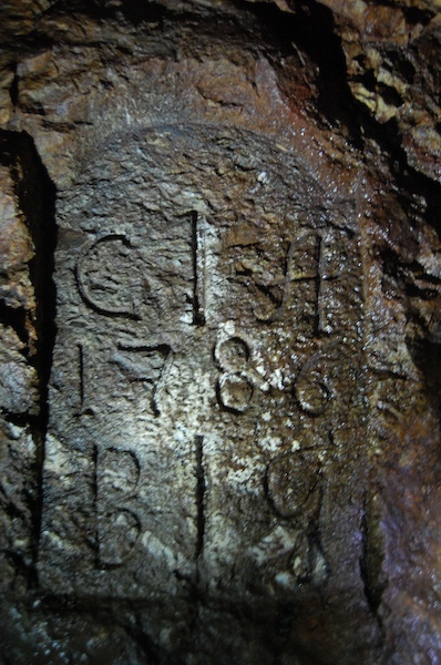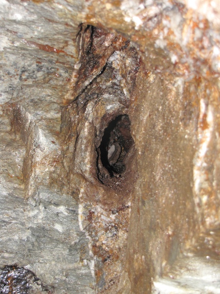 Die älteste Jahreszahl im „FDGS“ ist die 1786 im Bereich der Fundtafel. Zu dieser Zeit ist die Grubenanlage noch mit Schlägel & Eisenarbeit aufgefahren wurden. Die Fundtafel des „Caspar Stehenden“ liegt 60 m vom Stollnmundloch entfernt. Bei 160 m Vom Mundloch tangiert der „C Sth“ den „Freiberger Spat“ und erreichte auch das Kalklager, was somit vom Grundwasser gelöst wurde. Auf dem „F Sp“ wurde der „FDGS“ gut 100 m zum einen in nordwestliche Richtung, also in das Kalklager hinein und nach Südosten gut 700 m weit aufgefahren. Dabei finden sich nach gut 300 m keine Hinweise mehr auf den Dolomitmarmor. Bei etwa 430 m ist der „FDGS“ aufgrund hereingebrochener Zersetzungsmassen des Glimmerschiefer nicht mehr fahrbar. Dieser Bereich ist zwischen 1792 und 1842 unter Anwendung der Bohr- und Schießarbeit in geräumigen Profil aufgefahren wurden. Eindeutige Erzabbaue sind auf dem „FDGS“ nicht zu sehen. Doch finden wir heute ein sehr seltenes Zeugnis der Bohr- und Schießarbeit unserer Altvorderen in dieser Grubenanlage. Ein recht gut erhaltenen, abgegangener Schuss mit Lehmwolker und noch vorhandenen Resten der „Zündschnur“. Dabei handelt es sich um ein kleines Schilfrohr oder auch Strohhalm der noch heute im Lehmwolker steckt. Es liegt an jedem Besucher, Befahrer oder auch Montanforscher selbst, das solche Artefakte der Nachwelt erhalten und somit den uns nachfolgenden Generationen erhalten bleiben, also nur ANSCHAUEN - nicht anfassen !