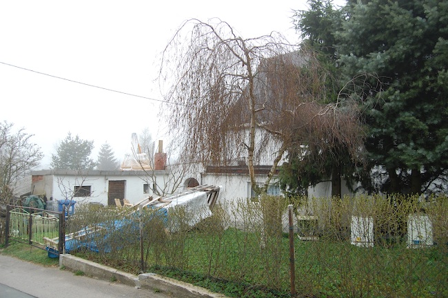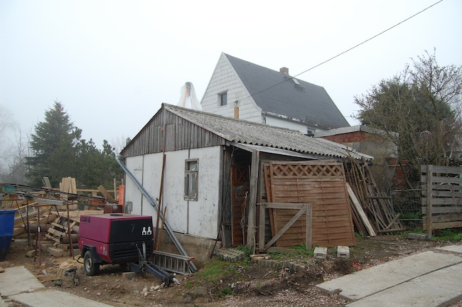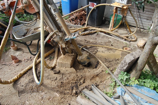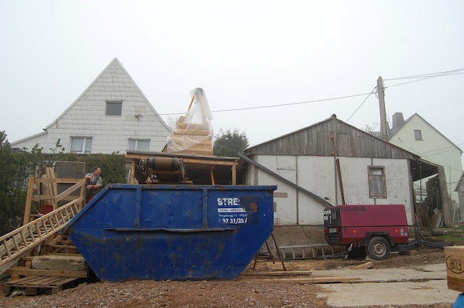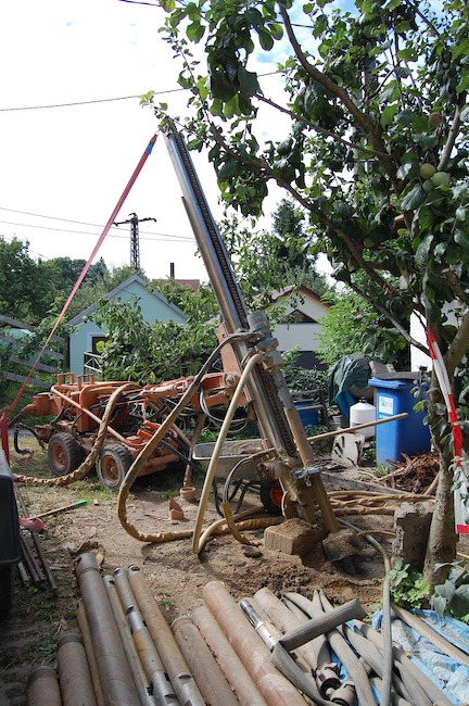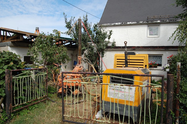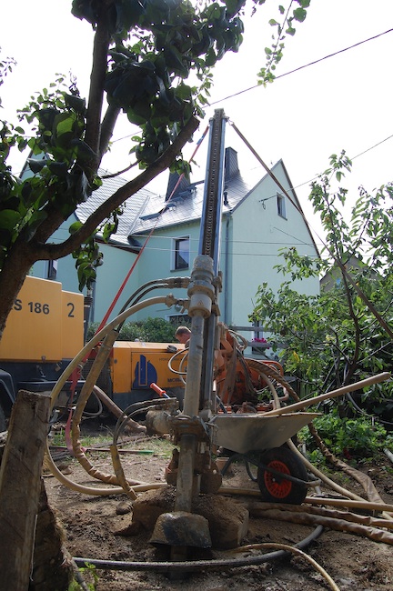 ![]() Einige Wochen später waren die Verwahrungsarbeiten schon voll im Gange: Im Garten hinterm Haus stand ein Bohrgerät. |