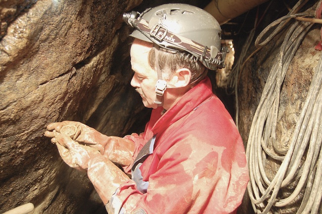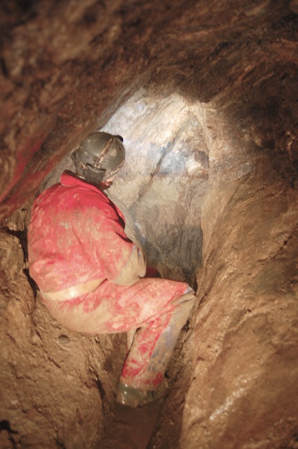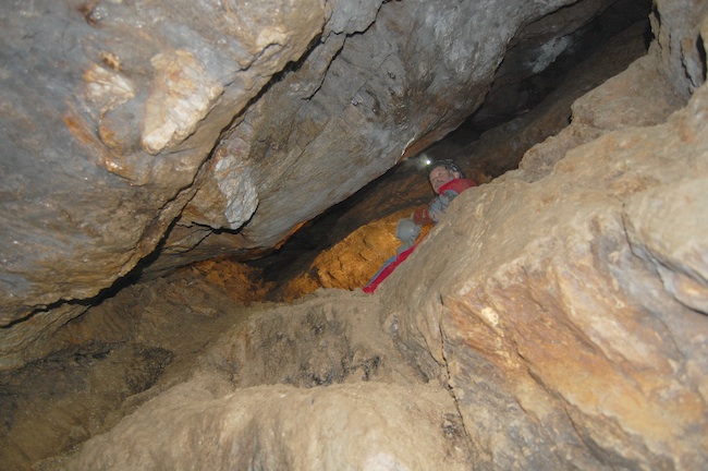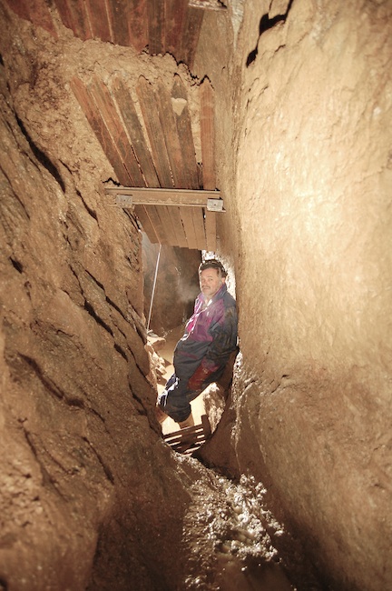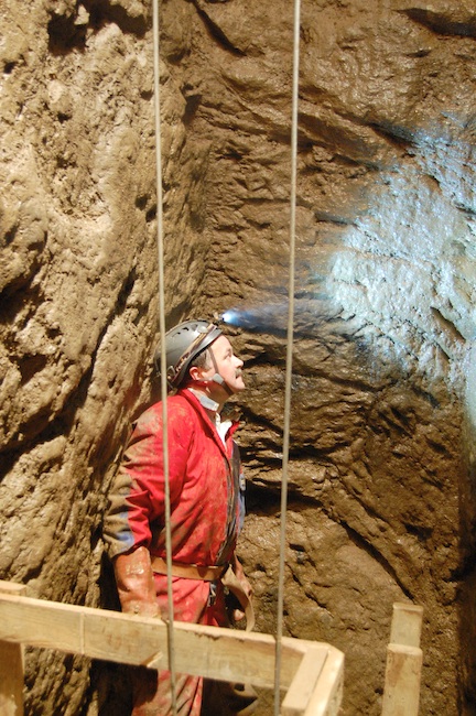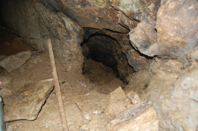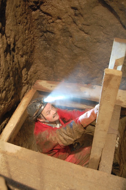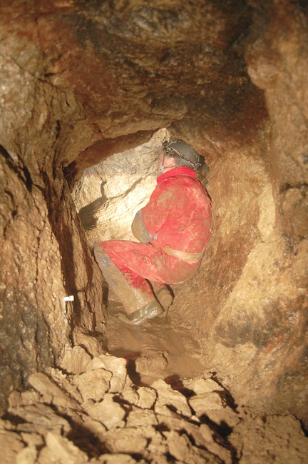 ![]() An der Verfüllmasse eines weitern Tageschachtes endet auch diese Befahrung. |