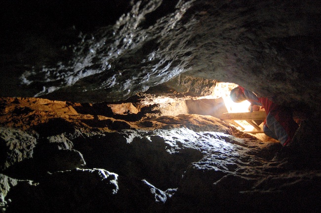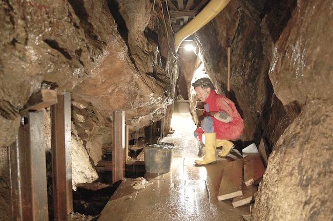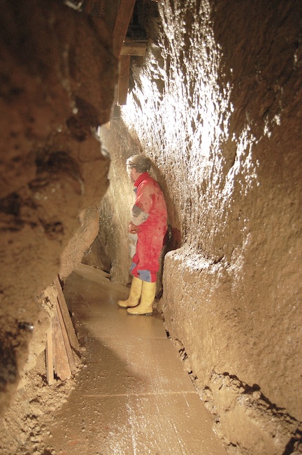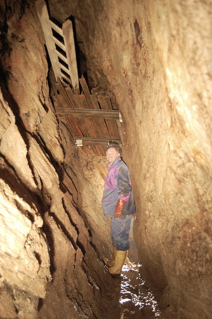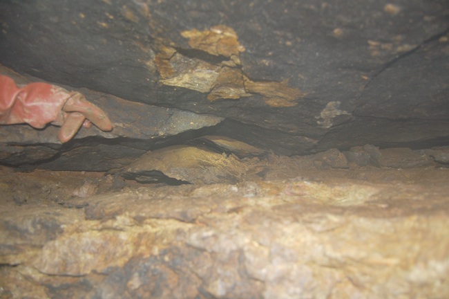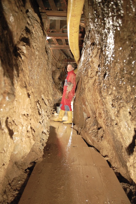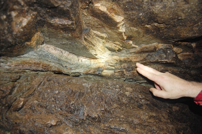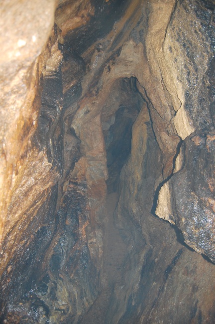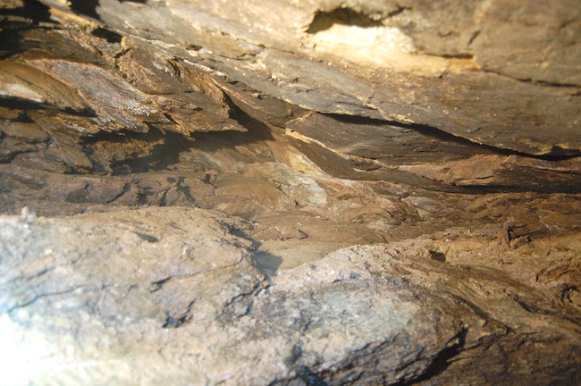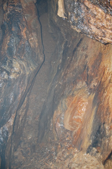 ![]() Geschlägelter Teil des Abbaus auf dem oberen Stolln. |