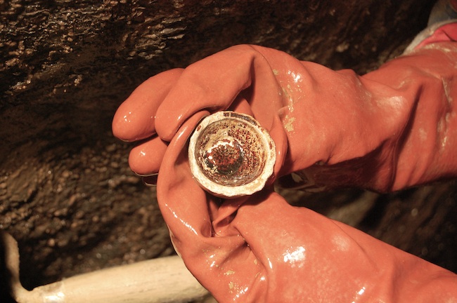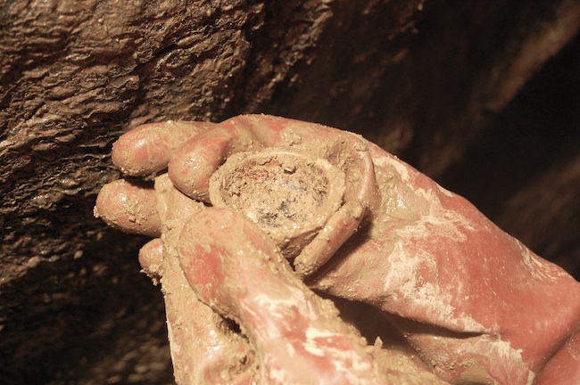 ![]() In den Abraummassen vor Ort fand sich auch ein Probierschälchen. |
