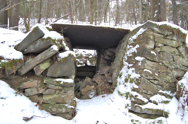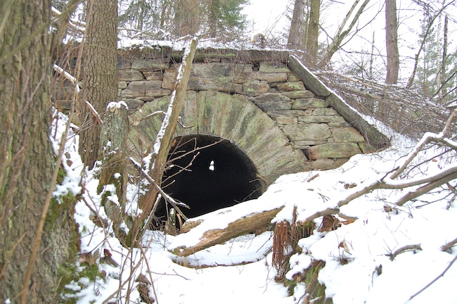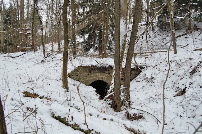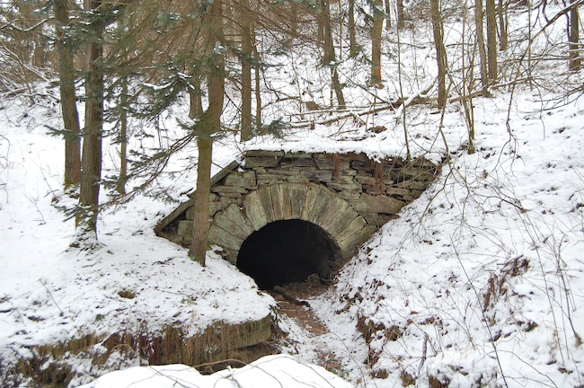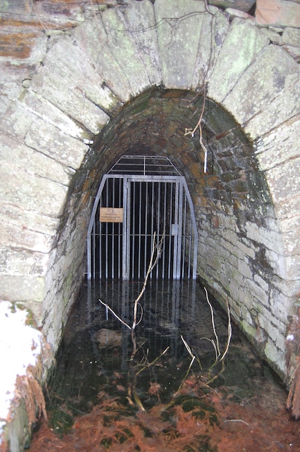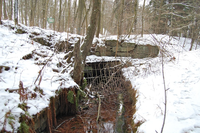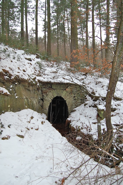 ![]() Das untere Mundloch der 2. Rösche an einer Wegüberführung zu einem größeren Steinbruch. |