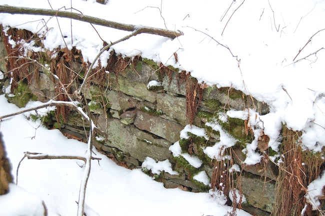 ![]() Ein Rest der Grabenmauer am Gehänge zum Teich. |