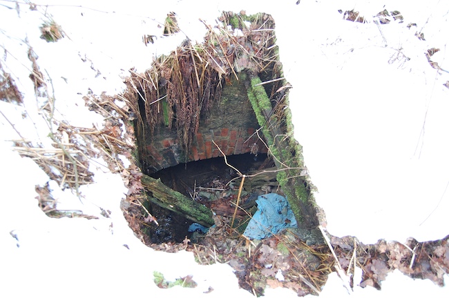 ![]() Weniger gut erhaltener Wasserabschlag / Striegel mit Brücke in Form einer Eisenplatte. |