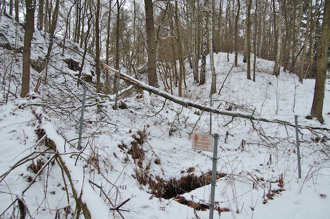 ![]() Das verbrochene obere Mundloch der 3. Rösche am Rande des Rosinenwaldes in Richtung Weißenborn. |