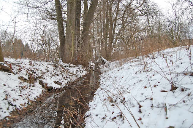 ![]() Blick zurück. Hier wurde der Grabenverlauf im Wiesenbereich in neuerer Zeit verrohrt... |
