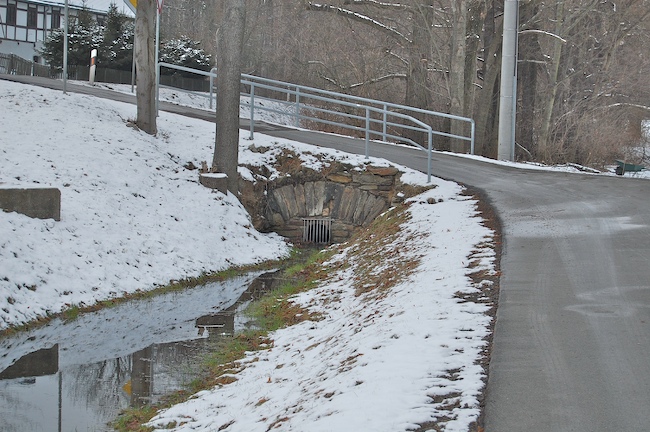 ![]() Das obere Mundloch der 2. Rösche ist heute nur noch ein "Lichtloch" infolge einer Wegüberführung. |