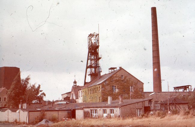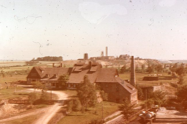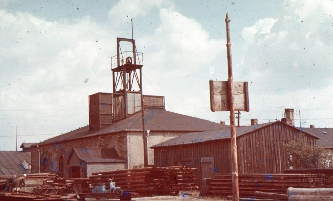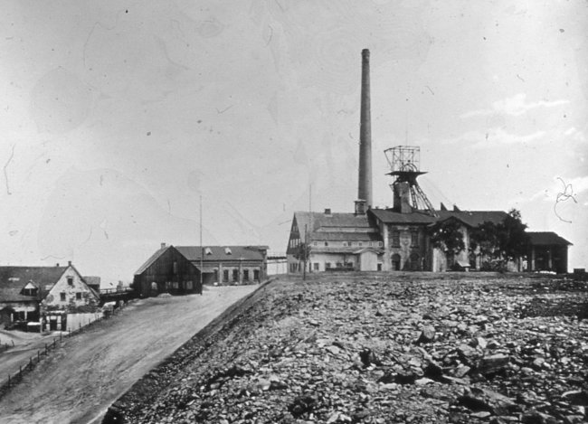 ![]() Der Davidschacht mit Stahlfördergerüst. (Sammlung Familie Klanthe, Halsbrücke) |
