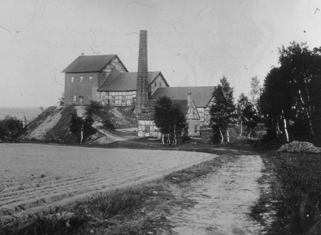 ![]() Das Treibehaus, Maschinenhaus und die wohl schon abgetragene Esse des Kesselhauses vom „Julius Schacht“. (Sammlung Familie Klanthe, Halsbrücke) |