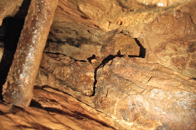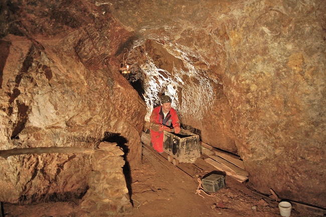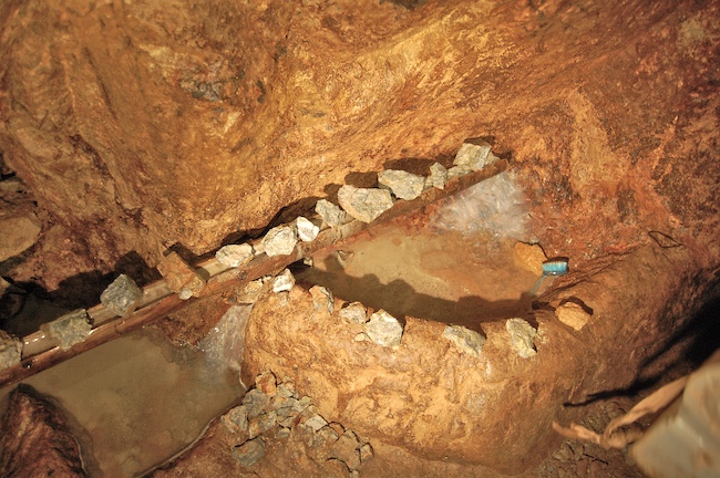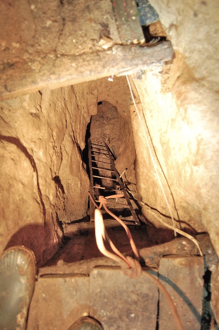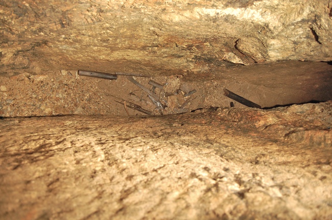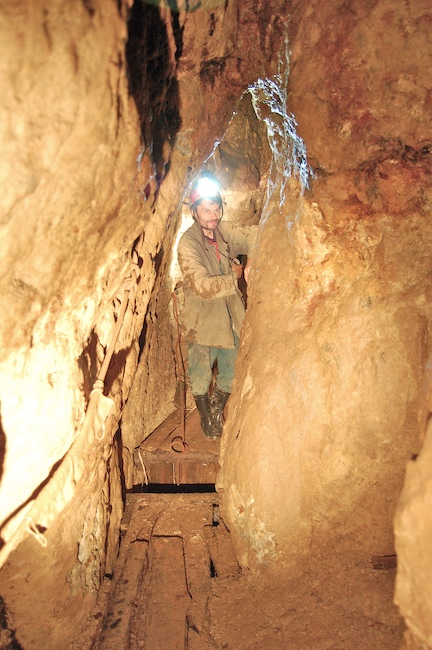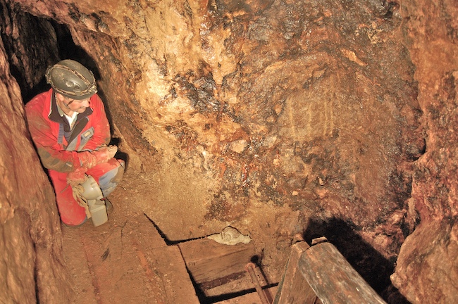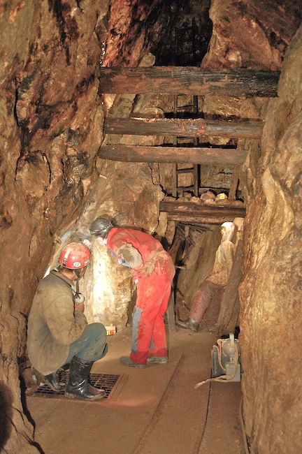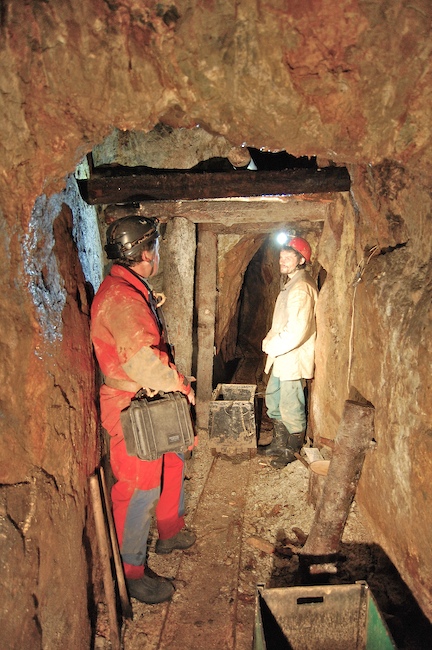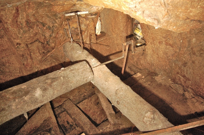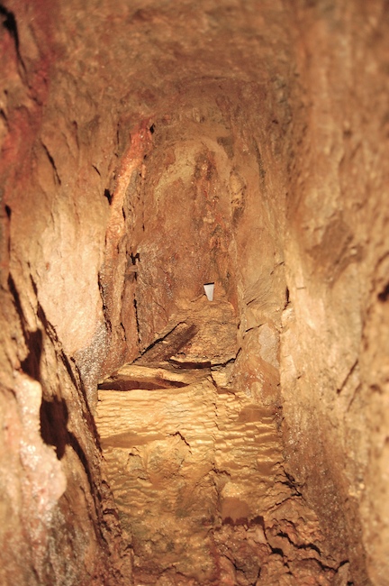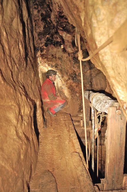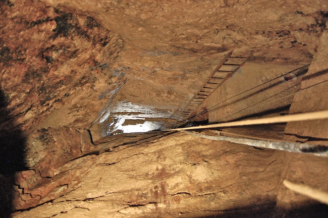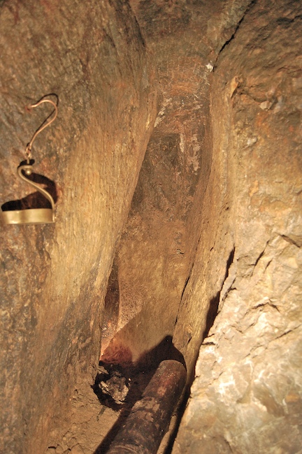 ![]() Ein weiterer kleiner Schacht führt zu einer Abbausohle, die gut 6 m unter der jetzigen Strecke liegt. |