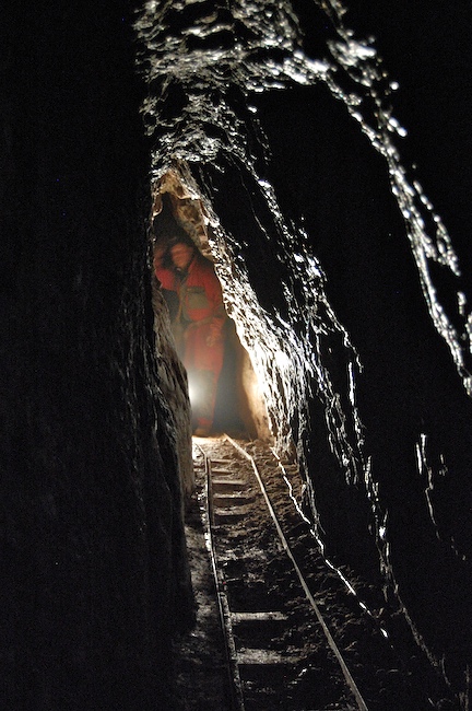 ![]() An einem weiteren Abbau ist für die normalen Besucher Schluß. Hier endet auch das erste Mal die Gleisanlage der kleinen Grubenbahn. |