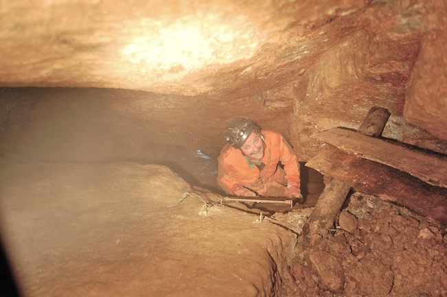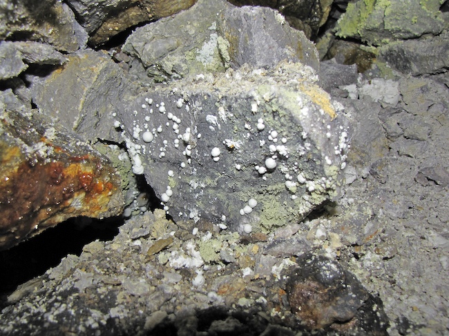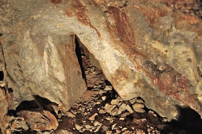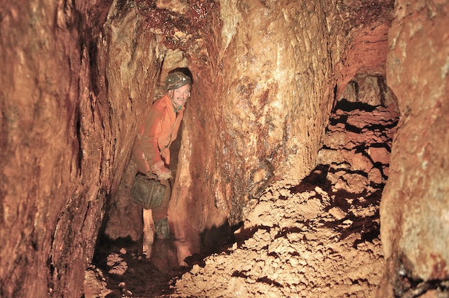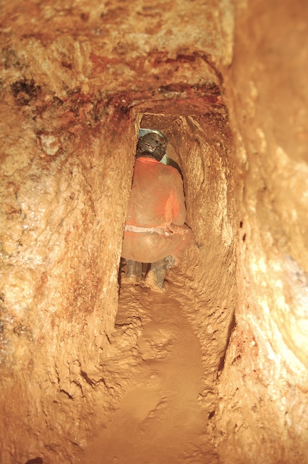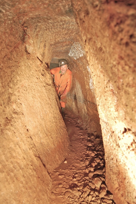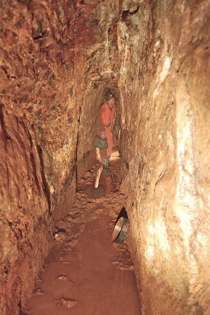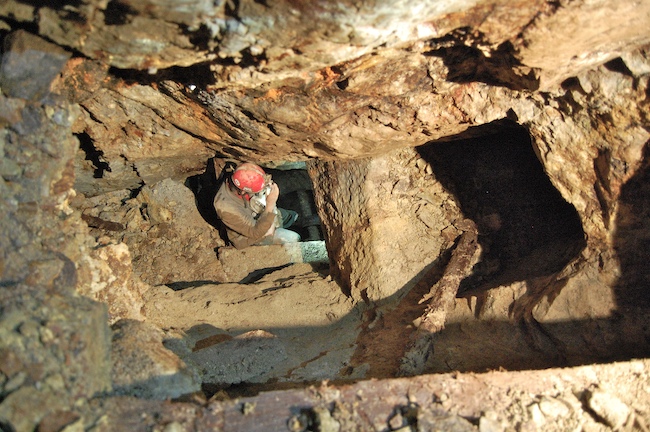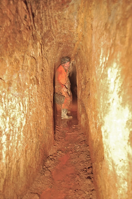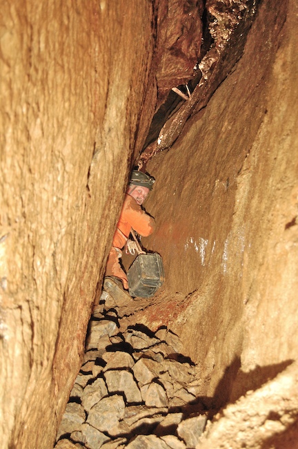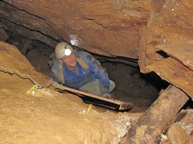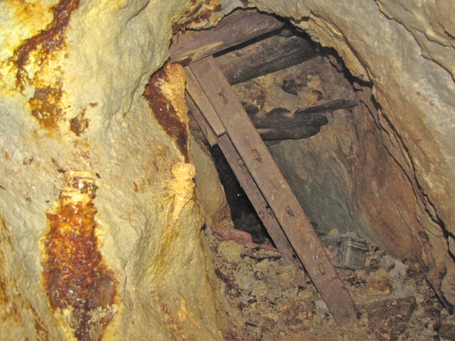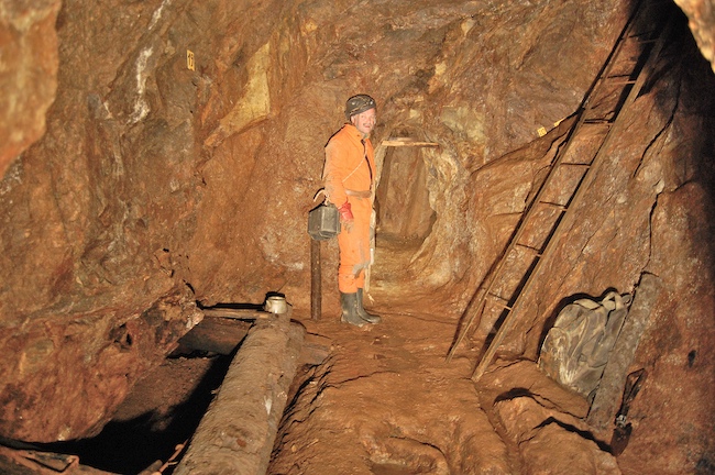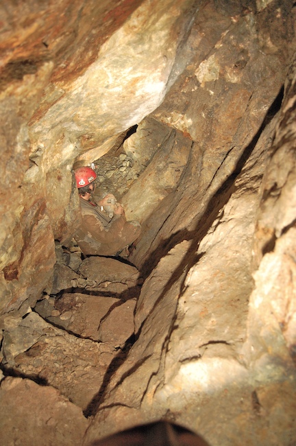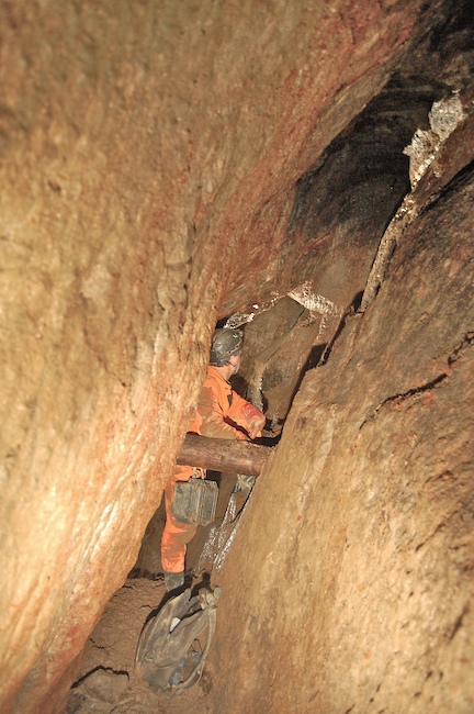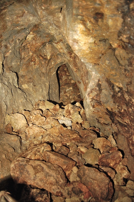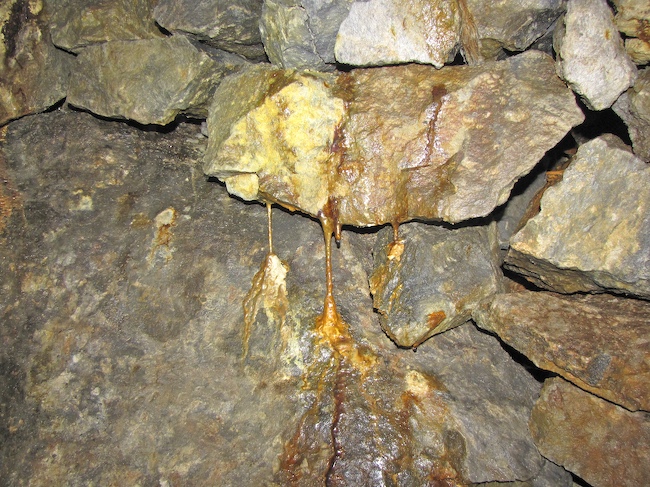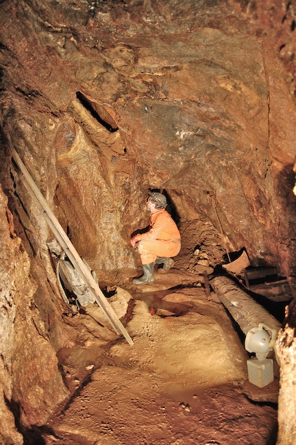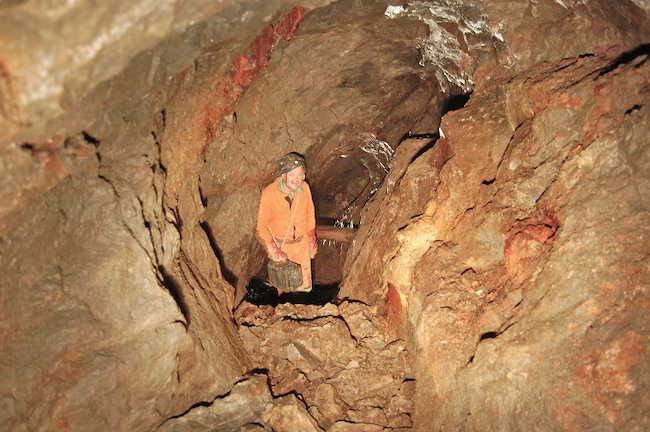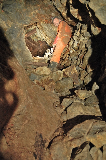 ![]() Da unten waren auch wieder die üblichen Arsenausblühungen zu sehen. (Foto Lutz Baldauf) |