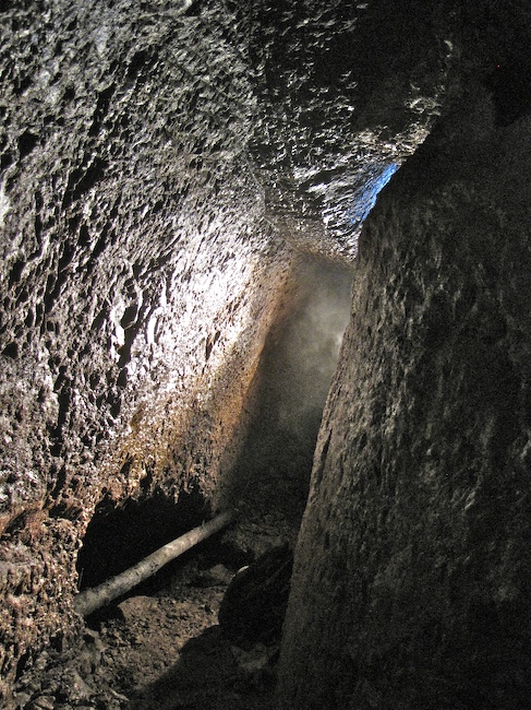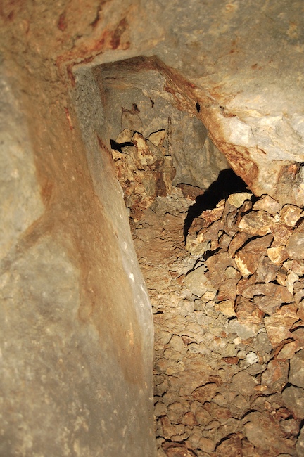 Der Rückweg etwas anders... Nachdem wir uns auf den Rückweg begeben haben – wir mussten denselben Weg auch zurück wie wir gekommen waren – begaben wir uns auf denselben Gang weiter nur diesmal nicht nach oben in einen Abbau, sondern folgten dem Gang in einem leichten Fallen.